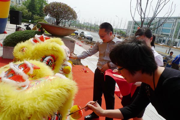 堂總和丁總為舞獅點金,寓意江寧旗艦店開業大吉