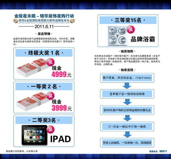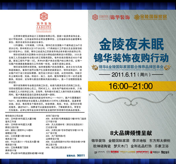 發布時間:2011-06-01 15:25:00 閱讀次數:8238次 金陵夜未眠錦華裝飾夜購行動