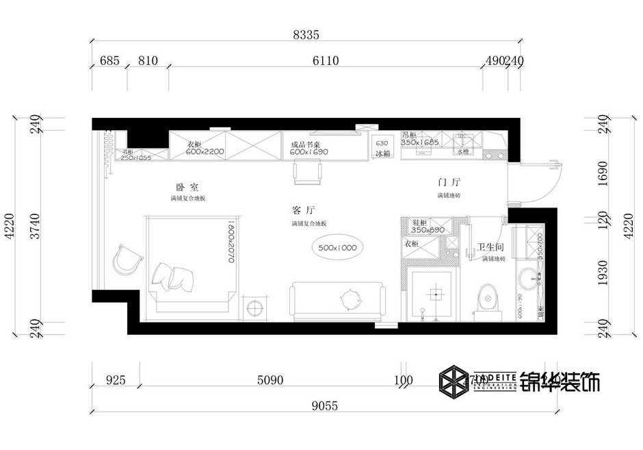案例戶型:一室一廳一衛