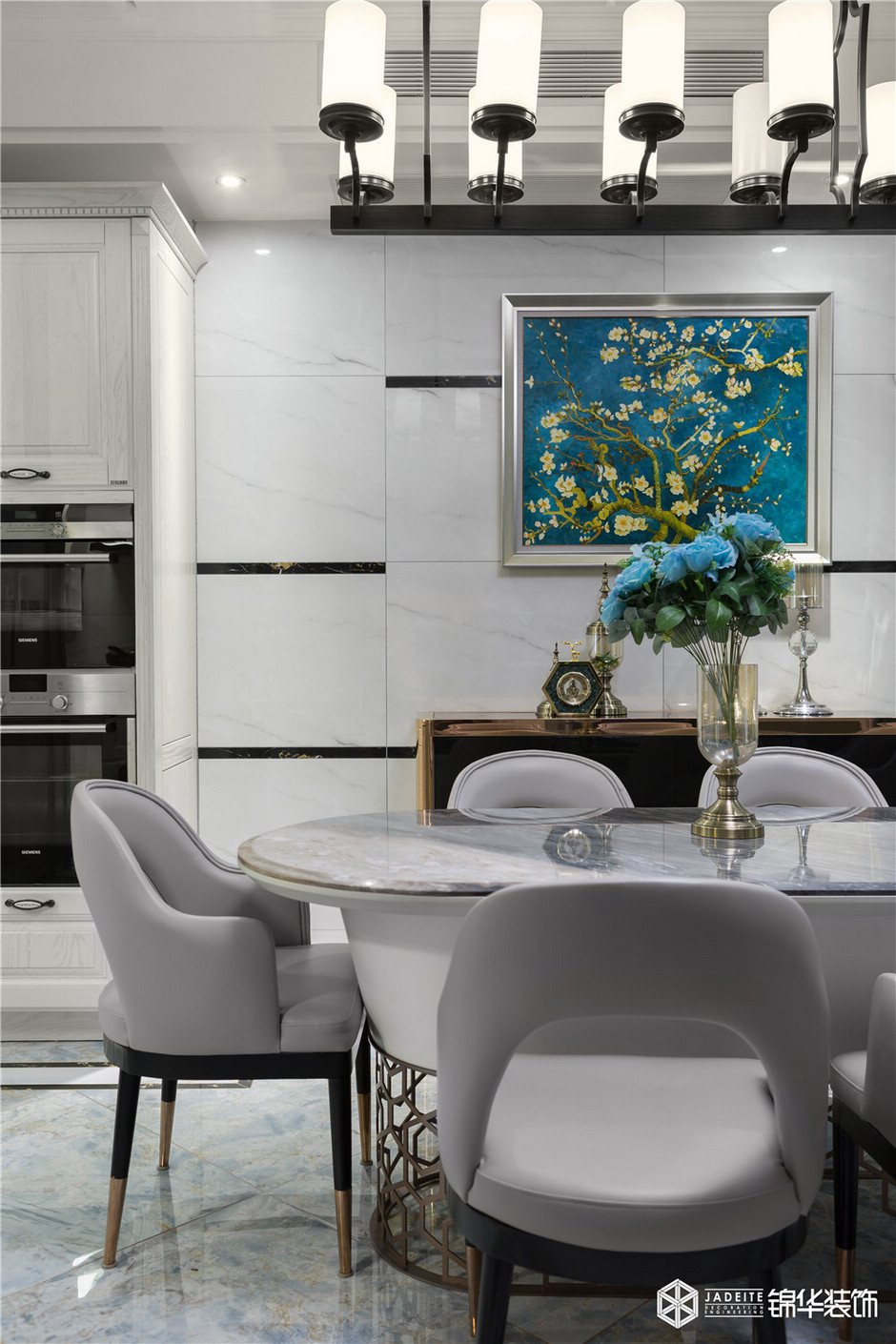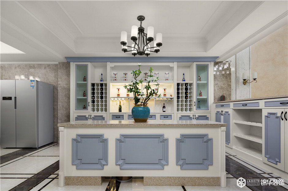 設計師:是的,業主那會看了挺多的效果圖以及實景照片,但沒有一個清晰的概念,說特別喜歡哪一個。巧的是,那會廣州正好有一個設計展和家具展,我們就去了。展會上,客戶特別喜歡一款沙發的樣式,所以我們就根據這個思路,找到了本案的設計風格——美式鄉村。