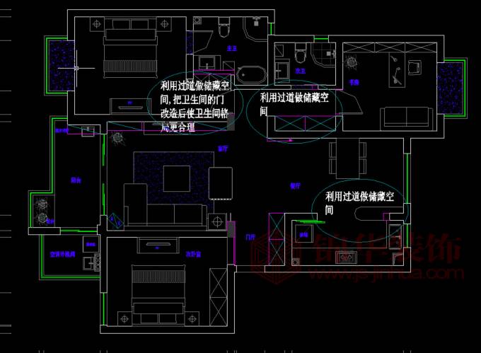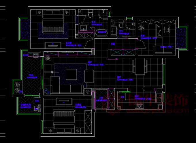 高爾夫國際123平米平面布置分析圖: